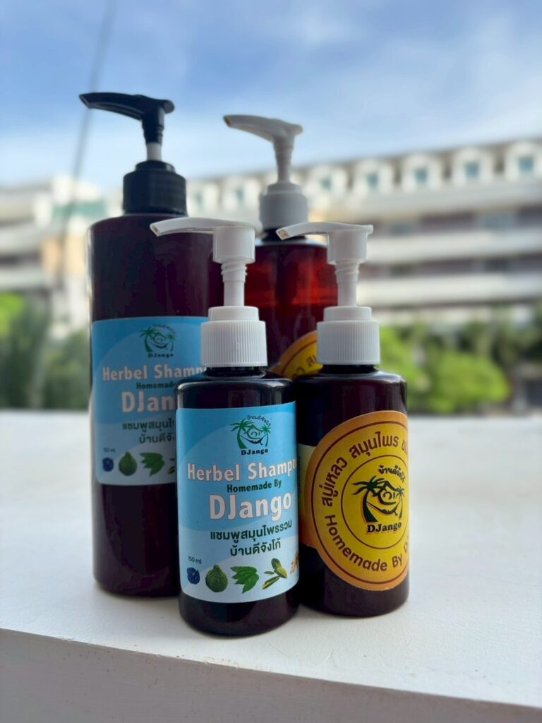 - แชมพูสมุนไพร ขนาดเล็ก 150 มล. — 90 บาท
